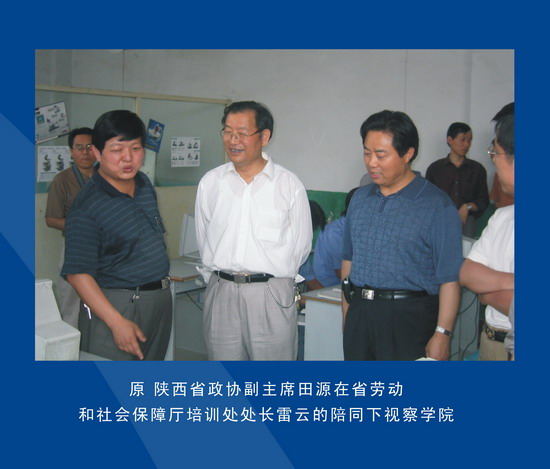 原省政協(xié)副主席田源在省勞動(dòng)廳雷處長(zhǎng)陪同下視察學(xué)院