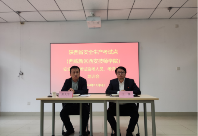 為進一步規(guī)范安全生產(chǎn)考試管理,嚴格安全生產(chǎn)考試紀律,確保西咸區(qū)域安全生產(chǎn)培訓(xùn)機構(gòu)和考試點的規(guī)范合作,扎實推動西咸新區(qū)安全生產(chǎn)考試工作高質(zhì)量發(fā)展,11月6日下午學(xué)院舉行陜西省安全生產(chǎn)考試點(西咸新區(qū)西安技師學(xué)院)安全生產(chǎn)考試監(jiān)考人員、考評人員培訓(xùn)會。學(xué)院黨委委員、副院長張大寧,培訓(xùn)中心主任王楠,工業(yè)自動化系、電氣工程系14名專業(yè)課老師,以及思啟通達、永宣安防、宏盛軍馳、華安等7家安全生產(chǎn)培訓(xùn)機構(gòu)的負責(zé)人、考評員參加了本次培訓(xùn)會。