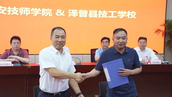 若羌縣技工學(xué)校黨委委員、副校長王延彬、阜康技師學(xué)院副校長鐘振紅分別與陜西天益教育科技有限公司副總經(jīng)理魏旬,簽訂了產(chǎn)教融合校企合作戰(zhàn)略合作協(xié)議。