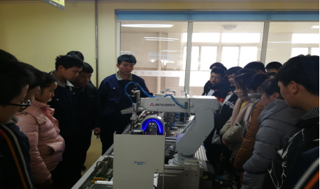 在學管中心的統(tǒng)一安排下,各系老師的帶領師生們先后前往汽修實訓車間、高壓電器培訓中心、 3D打印技術、工業(yè)機器人、機電一體化實訓等教室進行參觀交流。