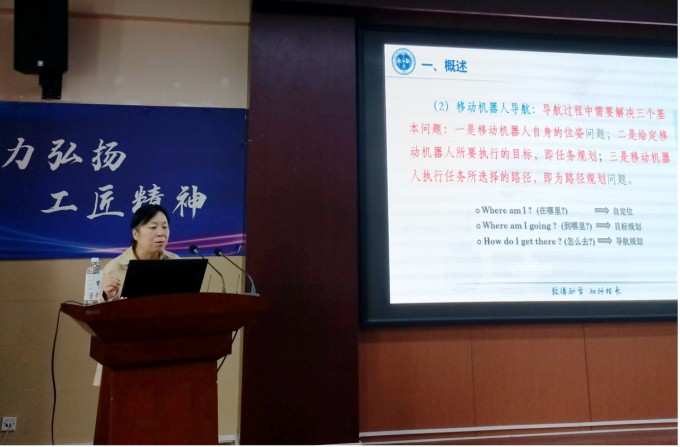 為進(jìn)一步提高學(xué)生的專(zhuān)業(yè)能力,擴(kuò)展知識(shí)儲(chǔ)備,了解新時(shí)代下移動(dòng)機(jī)器人自主導(dǎo)航技術(shù)及其發(fā)展趨勢(shì),6月5日下午,機(jī)電技術(shù)系邀請(qǐng)西安工業(yè)大學(xué)工學(xué)高俊釵副教授開(kāi)展了“移動(dòng)機(jī)器人自主導(dǎo)航技術(shù)”專(zhuān)題講座。機(jī)電技術(shù)系機(jī)電一體化、智能控制專(zhuān)業(yè)部分學(xué)生及教師參加了此次學(xué)習(xí)。