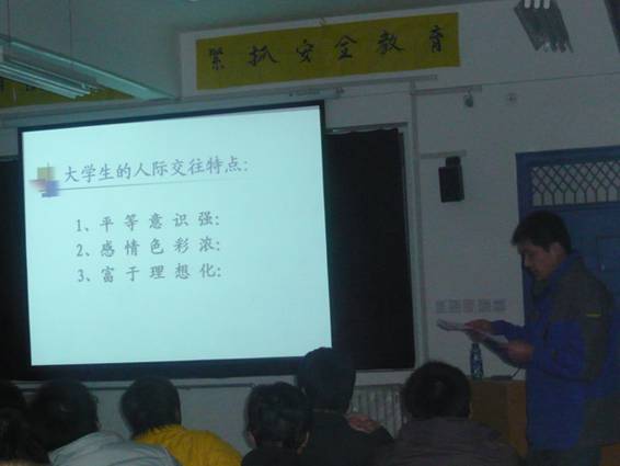 12月5日下午15:30在咸陽校區(qū)E—429教室,我校區(qū)舉辦心理健康系列講座之二“大學(xué)生人際交往方略”。由校學(xué)生管理辦公室陳德琪老師主講。