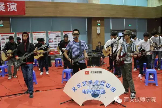 電聲藝術(shù)團(tuán)成立于2008年,已累計(jì)培訓(xùn)出100余名學(xué)生彈撥手,現(xiàn)有人數(shù)30余人,均來自學(xué)校各系室不同專業(yè)的學(xué)生。電聲藝術(shù)團(tuán)不僅豐富了學(xué)生的課余生活,培養(yǎng)了同學(xué)們的音樂愛好,在專業(yè)老師的指導(dǎo)下逐漸進(jìn)步,在校內(nèi)外多次比賽和演出活動(dòng)中均取得佳績并獲得了廣大師生們的一致好評(píng)。