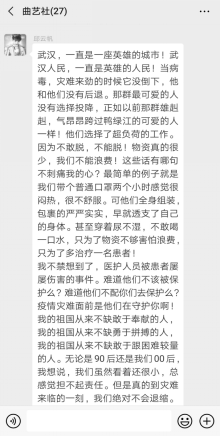 本次悼念活動(dòng)分為兩部分:1.在早晨九點(diǎn)五十之前在微信群發(fā)布緬懷先烈文字,向疫情期間犧牲的最可愛的人致敬;2.全體社團(tuán)成員在家衣著整齊,十點(diǎn)整進(jìn)行默哀儀式。