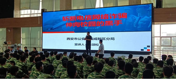 本次反詐宣傳活動分為網(wǎng)絡(luò)電信詐騙、禁毒防毒兩部分內(nèi)容進(jìn)行宣講。在第一部分內(nèi)容中,西咸新區(qū)公安分局警官圍繞什么是電信詐騙、如何預(yù)防電信詐騙、遇到電信詐騙如何斷卡、網(wǎng)絡(luò)安全等案例進(jìn)行詳細(xì)講解。警官運用典型案例和淺顯易懂的語言,向同學(xué)們講解基本法律知識,并向同學(xué)們介紹了自我防范和保障自身安全的一些方法和策略,以及遇到危險時如何運用法律維護(hù)自己的合法權(quán)益,并強(qiáng)調(diào)全體同學(xué)要樹立安全意識,從自我做起,從點滴做起,積極行動起來,參與到有序校園、安全校園的建設(shè)當(dāng)中來。