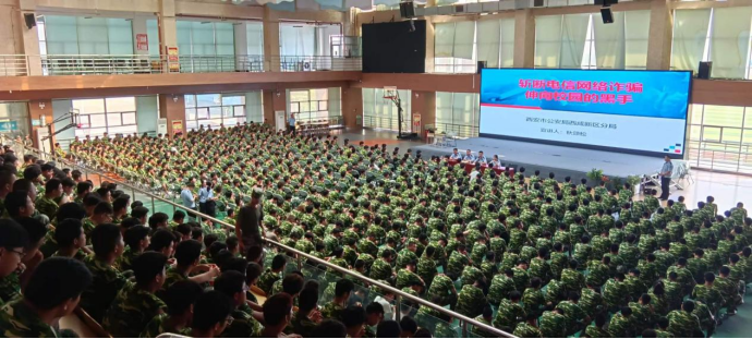 為了增強(qiáng)學(xué)生的法制觀念和校園安全意識,提高學(xué)生的自我保護(hù)能力,做到知法、守法,進(jìn)一步營造“和諧校園,平安校園”的良好環(huán)境,8月29日下午,學(xué)院邀請西咸新區(qū)公安分局相關(guān)領(lǐng)導(dǎo)與警官,開展2023年新生反詐、禁毒普法宣傳活動?;顒釉谖捏w中心二樓舉行,共約1200百余名師生參加。