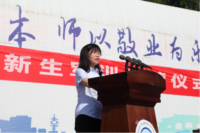 黨委副書記、紀(jì)委書記孫占亞向軍訓(xùn)團(tuán)贈(zèng)錦旗后發(fā)表了熱情洋溢的軍訓(xùn)工作總結(jié)暨開學(xué)典禮講話,他首先代表學(xué)校,向?yàn)檐娪?xùn)付出辛勤汗水的各位教官和班主任表示衷心的感謝!向順利完成軍訓(xùn)任務(wù)的全體同學(xué),表示熱烈的祝賀!并對(duì)同學(xué)們?cè)谲娪?xùn)中表現(xiàn)出的敢于吃苦、奮力拼搏的精神給予高度肯定。同時(shí)他還勉勵(lì)全體同學(xué)要將軍訓(xùn)成果轉(zhuǎn)化為學(xué)習(xí)的動(dòng)力,把軍訓(xùn)過(guò)程中練就的優(yōu)良作風(fēng)保持下去;把軍訓(xùn)期間養(yǎng)成的良好品質(zhì)和作風(fēng),帶到今后的生活、學(xué)習(xí)中去,一言一行都要高標(biāo)準(zhǔn)、嚴(yán)要求,遵守紀(jì)律,刻苦學(xué)習(xí),踏實(shí)做人,以優(yōu)異的成績(jī)回報(bào)老師、父母。