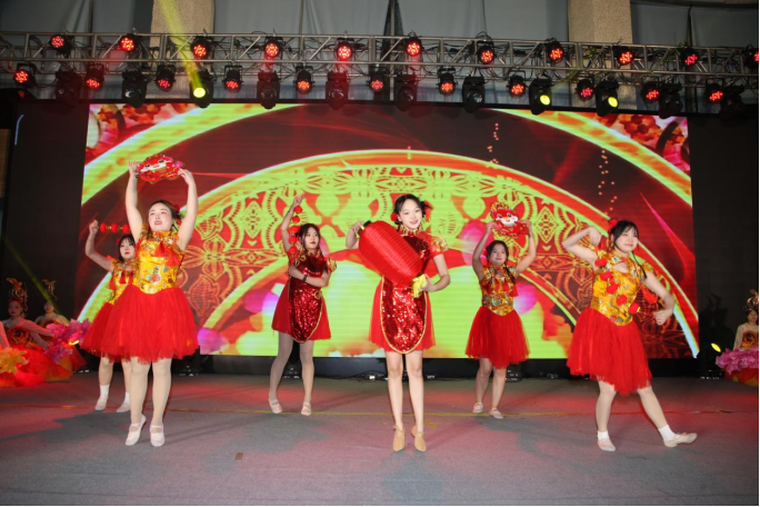 本場晚會由現(xiàn)代服務(wù)系表演的開場舞《龍騰虎躍鬧新春》拉開帷幕。