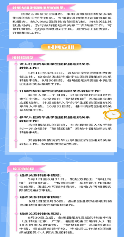為順利推進“學社銜接”工作,自5月起,全團依托“智慧團建”系統(tǒng)開展2020年畢業(yè)學生團員團組織關系轉(zhuǎn)接工作,直觀圖解來了!