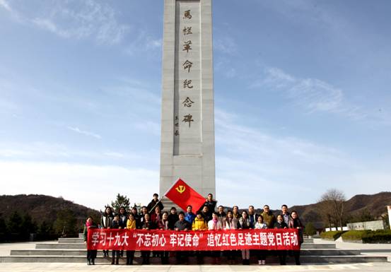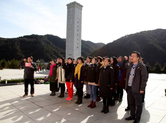 在馬欄革命紀(jì)念碑下,李長江書記對本次活動開展的教育意義以及黨員學(xué)習(xí)十九大精神的重要性進(jìn)行了講解;一支部黨員張郁叢、二支部黨員朱志杰分別代表支部就深入學(xué)習(xí)黨的十九大精神做了表態(tài)發(fā)言。之后在李長江同志的帶領(lǐng)下,全體黨員面向黨旗莊嚴(yán)宣誓:“我志愿加入中國共產(chǎn)黨,擁護(hù)黨的綱領(lǐng),遵守黨的章程,履行黨員義務(wù),執(zhí)行黨的決定,嚴(yán)守黨的紀(jì)律,保守黨的秘密,對黨忠誠,積極工作,為共產(chǎn)主義奮斗終身,隨時準(zhǔn)備為黨和人民犧牲一切,永不叛黨。”整齊嘹亮的入黨誓詞在馬欄革命紀(jì)念碑前響起,全體黨員面向黨旗正氣凜然、青春豪邁,鮮紅的黨旗在馬欄革命紀(jì)念碑下格外莊嚴(yán)。