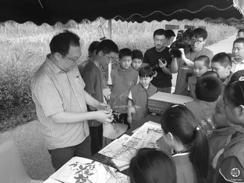 2017年9月15日,鐘揚教授在浦東向小學(xué)生們講解濕地生態(tài)保護(hù)有關(guān)知識