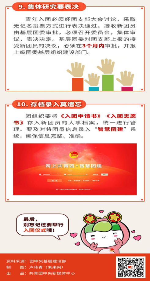 團章規(guī)定,年齡在十四周歲以上,二十八周歲以下的中國青年,承認團的章程,愿意參加團的一個組織并在其中積極工作、執(zhí)行團的決議和按期交納團費的,可以申請加入中國共產主義青年團。那么,發(fā)展團員的流程是什么呢?用一張圖告訴你!