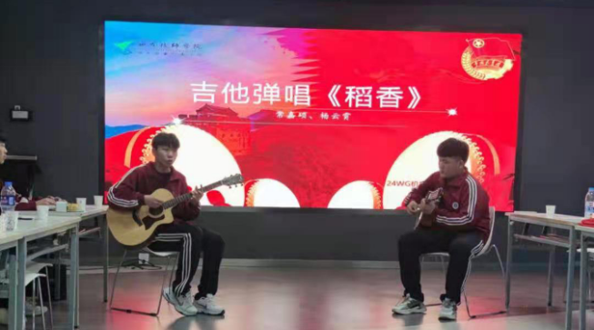 交流會(huì)上,24WG機(jī)電一班團(tuán)支部書記吉翔同學(xué)以互問互答的方式向大家提出黨史小問題,同學(xué)們進(jìn)行搶答,共同學(xué)習(xí)黨史知識(shí);史念同學(xué)向大家分享了她參觀八路軍西安辦事處紀(jì)念館的感想心得;最后,全體團(tuán)員進(jìn)行了文藝表演。高云普、白巖松和李南杰三位同學(xué)為大家?guī)砝收b《祖國(guó)啊,我親愛的祖國(guó)》;尚孝中、宋星宇、李彥錫、李睿琦和武旭同學(xué)表演合唱 《團(tuán)結(jié)就是力量》;常嘉碩、楊云霄同學(xué)帶來吉他彈唱《稻香》;吉翔、李嘉亮和黃一然同學(xué)帶來朗誦《少年中國(guó)說》;王智斌、張博表演了相聲《你好,黨》。