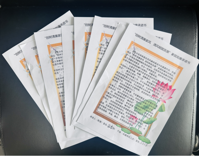 學(xué)院堅(jiān)持走廉潔文化品牌創(chuàng)新之路,把廉潔文化教育列入學(xué)院文化建設(shè)重要工作。9月份以來,集中在廣大師生中開展“古廉今鑒 清風(fēng)護(hù)航”廉潔文化系列活動(dòng)。一是結(jié)合學(xué)院實(shí)際編制印發(fā)了《“古廉今鑒 清風(fēng)護(hù)航”廉潔文化主題活動(dòng)實(shí)施方案》等3個(gè)工作方案;二是組織基層黨支部積極開展廉潔文化作品征集活動(dòng),截止目前,已征集到廉潔故事、家風(fēng)佳話11篇、名言警句7條,收到廉潔書畫作品11幅;三是組織實(shí)施“創(chuàng)樹清廉家風(fēng)清風(fēng)賦能發(fā)展”廉潔文化主題活動(dòng),收到各黨支部報(bào)送廉潔書信5篇、廉潔寄語20條、廉潔短視頻1條,通過學(xué)院校園網(wǎng)、微信公眾號向全體干部員工以及家屬發(fā)出家庭助廉倡議書1份,組織學(xué)院領(lǐng)導(dǎo)班子成員、中層干部以及關(guān)鍵崗位人員的家屬簽訂家庭助廉承諾書共計(jì)38份。