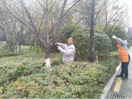 活動中,黨員們熱情高漲,手持鋸子、樹剪等工具,對生活區(qū)的枯枝樹木進行仔細修剪,經過幾個小時的辛勤努力,雜亂的樹枝、枯墜的斷枝被清理干凈,不僅消除了安全隱患,校園環(huán)境也煥然一新。黨員們充分展現了不怕臟、不怕累的精神風貌,相互協作,干勁十足。