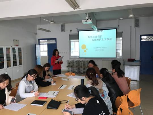 為深入貫徹落實(shí)黨的十九大精神,依據(jù)《陜西省實(shí)施女職工勞動(dòng)保護(hù)特別規(guī)定》,西安技師學(xué)院第五分會(huì)組織全體女職工于2018年3月16日下午在E-340開(kāi)展了以“加強(qiáng)生育保護(hù),依法維護(hù)女職工合法權(quán)益和特殊利益”的維權(quán)學(xué)習(xí)活動(dòng)。第五分會(huì)女工委員穆婷組織并主持了本次活動(dòng)。