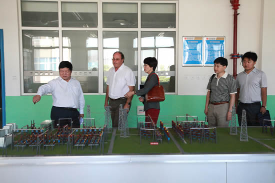隨后,杰克·杜塞爾多普一行在李長江院長的陪同下,參觀了高壓電氣系、工業(yè)自動(dòng)化系、汽車工程教研室的課堂教學(xué)與實(shí)訓(xùn)中心,以及校辦工廠豪特公司生產(chǎn)車間和我院現(xiàn)代化的大型學(xué)生餐廳。在高電系實(shí)習(xí)教室,都塞爾多普主席和正值擔(dān)任13G輸變電高電2班安全員的高陽陽、高曉燕同學(xué)的交流中,杜塞爾多普主席問到“你為什么選擇這所學(xué)校?之前有沒有來過這所學(xué)校?你了解你的專業(yè)嗎?”兩位同學(xué)在回答中對(duì)專業(yè)的了解和對(duì)職業(yè)的熱愛使杜塞爾多普主席對(duì)我院學(xué)生刮目相看、連連稱贊。當(dāng)杜塞爾多普主席參觀到我院預(yù)備技師班的作品展室時(shí),饒有興趣的親自操作了我院學(xué)生自己研制的塔式起重機(jī)模型,并給予高度評(píng)價(jià)。