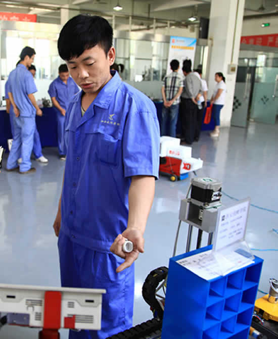 高少偉同學(xué)談到能在本次校園開(kāi)放周活動(dòng)中展示自己的成果,心情相當(dāng)興奮、喜悅。在門新會(huì)老師一體化教學(xué)活動(dòng)中,他和搭檔承擔(dān)了制作這個(gè)自動(dòng)化立體倉(cāng)庫(kù)模型的任務(wù),連續(xù)幾天幾夜去圖書(shū)館、上網(wǎng)查閱各類資料,確立方案,中間雖然遇到過(guò)難題,但是在老師的熱情鼓勵(lì)下,懷揣對(duì)成功的執(zhí)著渴望,他最終出色的完成了任務(wù),通過(guò)這樣的教學(xué)活動(dòng),加強(qiáng)了知識(shí)點(diǎn)的鞏固,提升了自己的創(chuàng)新能力、獨(dú)立操作能力以及團(tuán)隊(duì)協(xié)作能力。