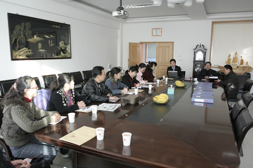 王長奎書記代表學(xué)院就企業(yè)文化宣貫工作實(shí)施的總體情況向檢查組進(jìn)行介紹