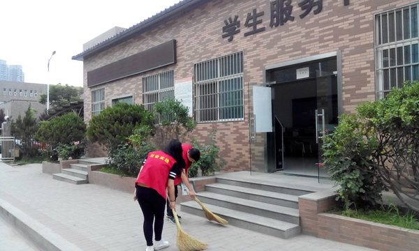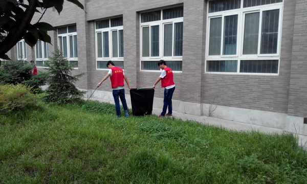 參加社會實踐的同學(xué)們深入到E座教學(xué)樓后清理衛(wèi)生死角