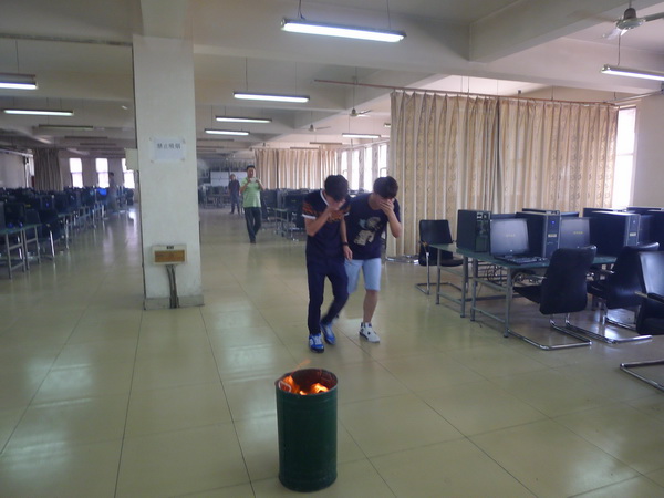 為了確保學(xué)生在校園內(nèi)遇到火災(zāi)等特殊情況,能在最短的時間內(nèi)迅速撤離現(xiàn)場,疏散到安全區(qū)域,同時也為了加強安全教育和管理,廣泛深入地開展應(yīng)急疏散工作,使師生的應(yīng)急疏散能力、自我保護能力以及安全意識得到提高。2015年6月25日下午,信息與藝術(shù)系師生在E座4樓計算機機房進行了一次火災(zāi)安全疏散演練。
