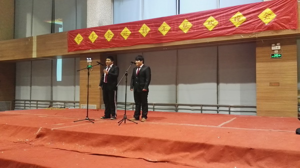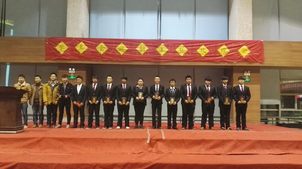 本次活動由學(xué)生會文體部全程組織策劃,院學(xué)生會及學(xué)生社團(tuán)各部門均參與其中,齊心協(xié)力為本次聯(lián)歡會獻(xiàn)出精彩的節(jié)目。聯(lián)歡會上,首先由崔處長發(fā)表熱情洋溢的講話,代表學(xué)生工作處對全體同學(xué)致以新年的問候,對全體學(xué)生會、學(xué)生社團(tuán)成員一年來的辛勤付出表示衷心的感謝。并勉勵大家在新的一年里進(jìn)一步提升自我管理能力與服務(wù)意識,切實(shí)做好學(xué)生會、學(xué)生社團(tuán)的各項(xiàng)工作。隨后,演出正式開始,由電聲吉他社團(tuán)的同學(xué)們演唱的《奔跑》為本次聯(lián)歡會拉起了序幕。接下來,由傳統(tǒng)文化社團(tuán)表演的傳統(tǒng)文化舞蹈《禮儀之邦》讓全場觀眾感受到了中華文明的源遠(yuǎn)流長、博大精深;由墨香書法社與籃球社同學(xué)表演的的對口相聲《滿腹經(jīng)綸》使同學(xué)們捧腹大笑;街舞社團(tuán)表演的《動感街舞》活力四射,將本次活動的氣氛帶入了高潮,各部門的節(jié)目都各有特色,得到了現(xiàn)場觀眾的一致好評 。在聯(lián)歡會中,還穿插了豐富多彩的趣味小游戲,無論是老師還是學(xué)生都在游戲中積極踴躍,體會著那份輕松與快樂?;顒幼詈?,李凱老師宣讀了學(xué)院團(tuán)委《關(guān)于表彰2015年優(yōu)秀學(xué)生會、學(xué)生社團(tuán)學(xué)生干部及成員的決定》,并向獲獎學(xué)生現(xiàn)場頒發(fā)了榮譽(yù)證書。