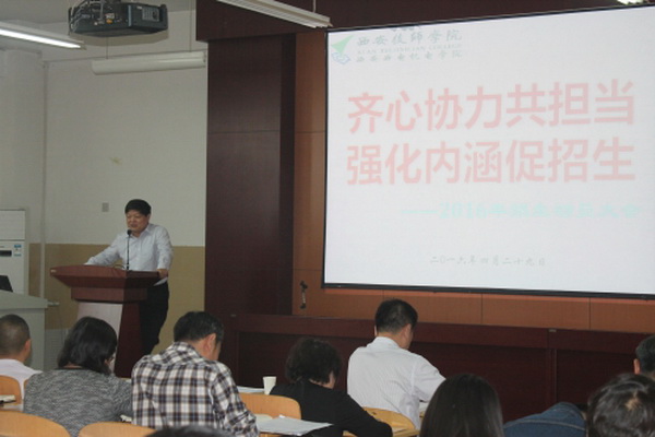 2016年4月29日下午,學(xué)院在咸陽校區(qū)C座302室召開了2016年招生動員大會。院領(lǐng)導(dǎo)及全體教工參加了本次大會,大會由副院長楊廣明主持。