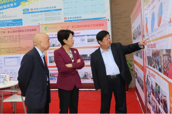 陜西省政協(xié)副主席、陜西省中華職業(yè)教育社主任李冬玉在觀看學(xué)生作品