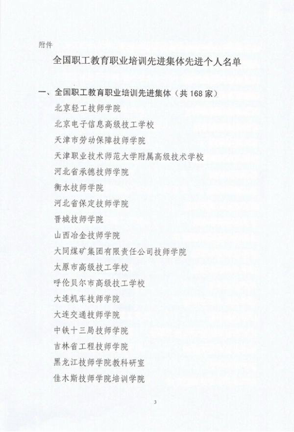 喜報(bào)(全國(guó)職工教育職業(yè)培訓(xùn)先進(jìn)集體、先進(jìn)個(gè)人)