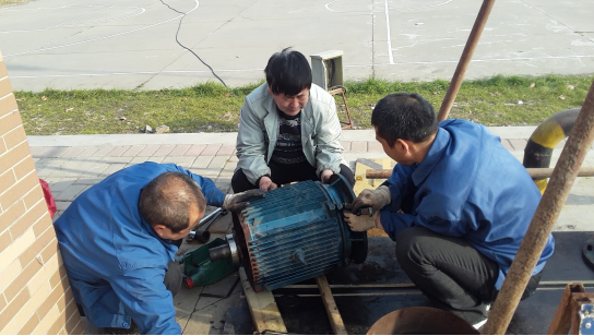 后勤維修人員安裝增壓泵電機