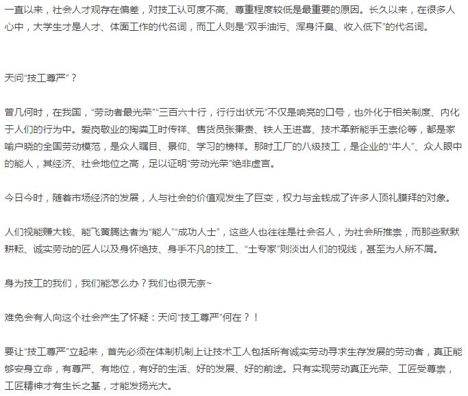 【知識】“不屑于當技工”心態(tài)不破除,談何工匠精神?