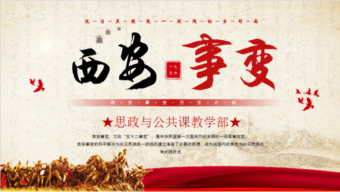 大家好!新一期思政小課堂又跟大家見(jiàn)面了。本期思政小課堂的主題是“ 百年黨史一起學(xué)之西安事變”。今天,我們一起回顧西安事變這一重大歷史事件,循革命足跡,傳承紅色基因。1936年12月12日,西安事變爆發(fā)為抗日民族統(tǒng)一戰(zhàn)線(xiàn)的形成掃清了障礙,在中國(guó)歷史上有著極為重要的意義。本期思政小課堂將圍繞西安事變背景、西安事變經(jīng)過(guò)、西安事變和平解決的意義和西安事變的當(dāng)代啟示這四部分展開(kāi)。接下來(lái),讓我們一起走進(jìn)第十八期的思政小課堂吧。