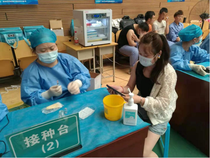10點,疫苗接種工作正式開始,在學院各個部門的緊密配合下,疫苗接種工作順利有效的進行。