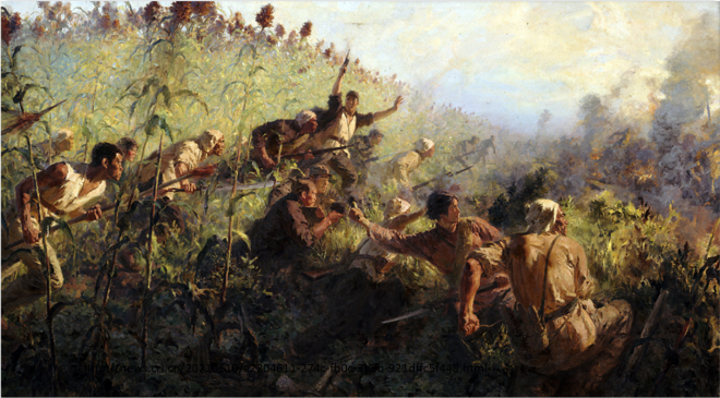王楠書(shū)記以中央美術(shù)學(xué)院教授、油畫(huà)家韋啟美先生于1977年創(chuàng)作的一幅油畫(huà)《青紗帳里游擊隊(duì)員逞英豪》為內(nèi)容,講述了中國(guó)共產(chǎn)黨領(lǐng)導(dǎo)的游擊隊(duì)抗擊日本侵略者的英勇事跡。《青紗帳里游擊隊(duì)員逞英豪》這幅作品它的題目和內(nèi)容都源自《黃河大合唱》的歌詞,畫(huà)作反映了抗日戰(zhàn)爭(zhēng)期間,華北地區(qū)游擊隊(duì)英勇抗戰(zhàn)的戰(zhàn)斗場(chǎng)面。作品選擇游擊隊(duì)員沖出青紗帳的激烈場(chǎng)面為表現(xiàn)主體,畫(huà)面洋溢著激昂的英雄主義情調(diào)。當(dāng)年鐵道游擊隊(duì)馳騁的疆場(chǎng),如今密布的是縱橫交織的交通網(wǎng)絡(luò),動(dòng)車和高鐵展示著令我們驕傲的中國(guó)速度。戰(zhàn)爭(zhēng)年代滿目瘡痍的華北平原,如今到處是一派欣欣向榮的生機(jī)。在新的歷史起點(diǎn)上,生活在這片土地上英勇智慧的人民,繼續(xù)發(fā)揚(yáng)優(yōu)良的革命傳統(tǒng),在民族復(fù)興的偉大征程中再創(chuàng)輝煌!