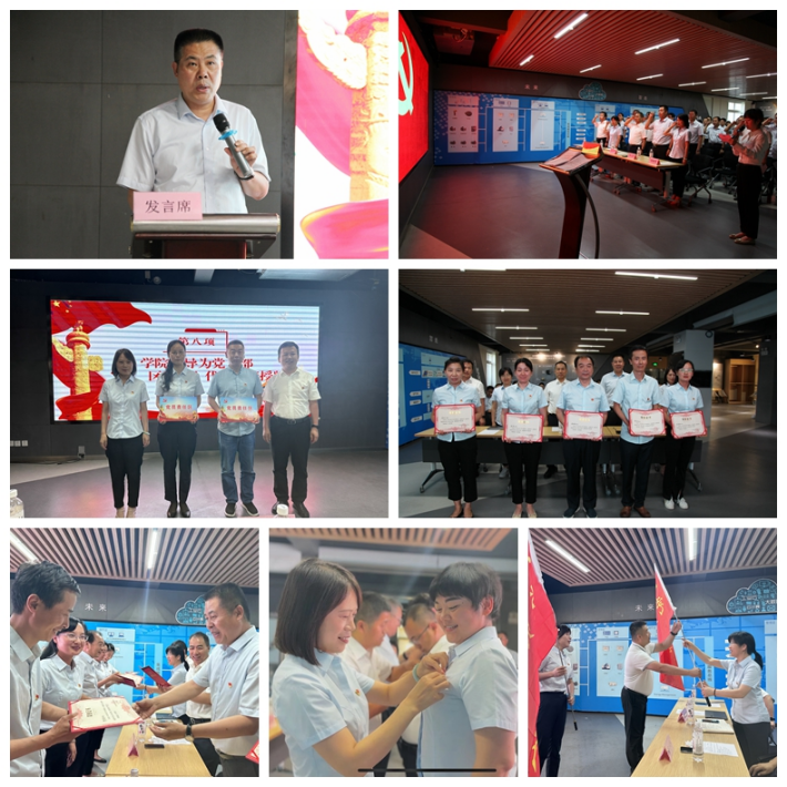 活動(dòng)中,學(xué)院黨委副書記、紀(jì)委書記孫占亞同志宣讀了2023年發(fā)展黨員、黨員轉(zhuǎn)正的決定以及2021-2023年度學(xué)院“兩優(yōu)一先”表彰決定;在學(xué)院黨委辦公室主任易海英同志的帶領(lǐng)下,2023年新發(fā)展黨員在黨旗下莊嚴(yán)宣誓,全體黨員重溫入黨誓詞,老黨員代表為新發(fā)展黨員佩戴黨徽;機(jī)電技術(shù)系新發(fā)展黨員王勇強(qiáng)同志代表全體新黨員鄭重承諾,在今后的工作、生活中以一名中國(guó)共產(chǎn)黨員的標(biāo)準(zhǔn)嚴(yán)格要求自己,加強(qiáng)理論學(xué)習(xí),積極接受黨組織的教育和考察;學(xué)院領(lǐng)導(dǎo)班子為“兩優(yōu)一先”集體及個(gè)人頒獎(jiǎng),并為基層黨支部黨員示范崗、黨員責(zé)任區(qū)、黨員服務(wù)隊(duì)代表授旗、授牌。